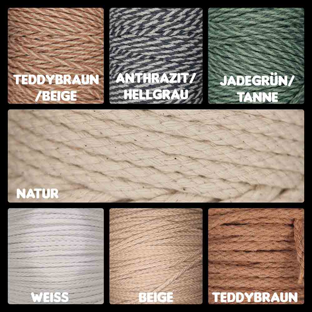 1) Baumwolle ist ein Naturprodukt und nicht für den dauerhaften Einsatz im Freien geeignet. Durch unterschiedliche Witterungsbedingungen kann sich die Baumwoll-Faser verändern / verkürzen / brüchig werden oä. Bitte Makramee Sachen also nicht draußen verwenden.